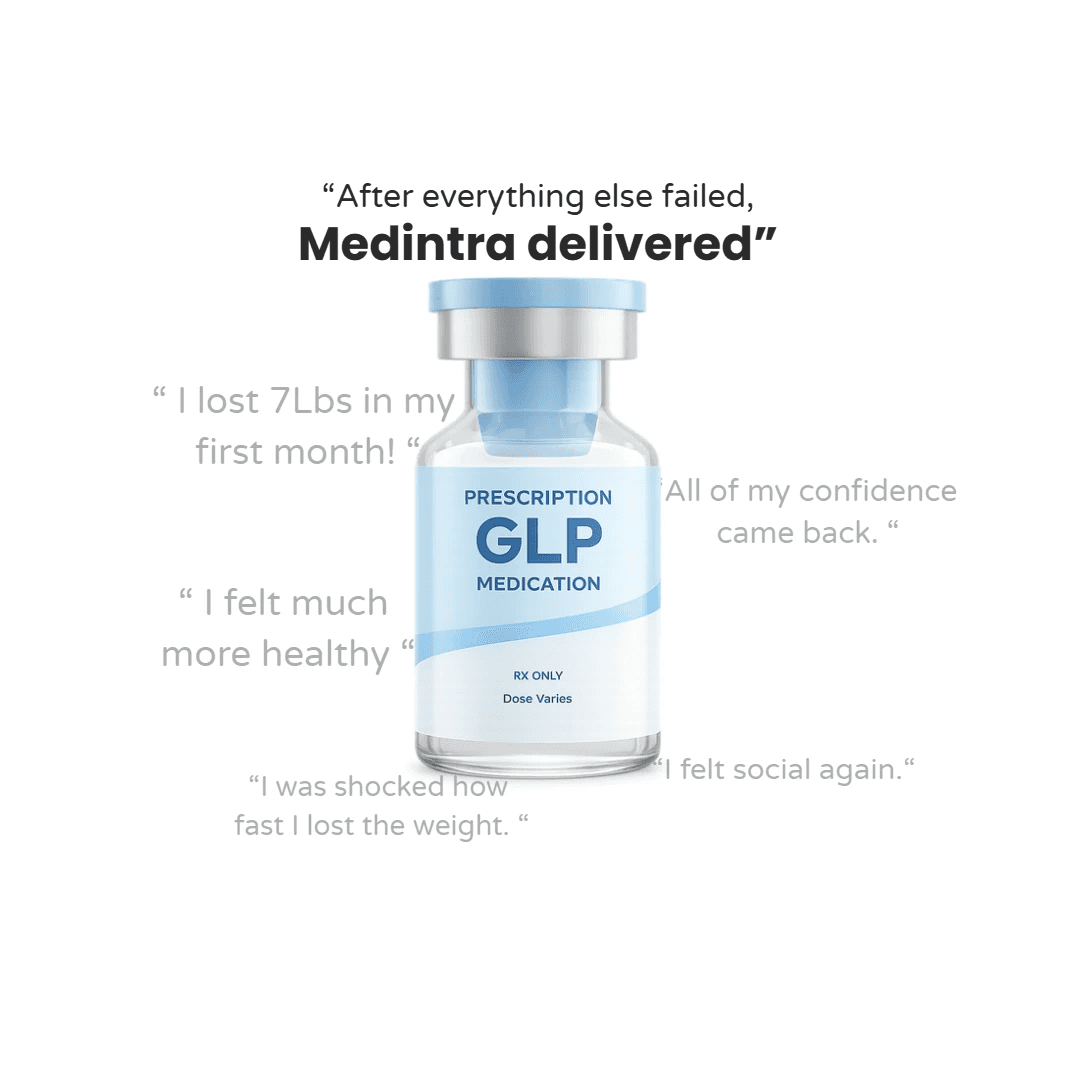 The Medintra Semaglutide program starts at $179 for your first month with no contract. This cost covers your physician review, full personalized plan, 1:1 guidance, metabolic report, and the cost of the prescription medication shipped right to your door. Refills are locked in at $299 and include all the same program benefits.